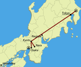 Reist u liever met vooruitgereserveerde treinkaartjes van Tokyo naar Kyoto en Osaka, dan wordt het tarief Eur 130 p.p. goedkoper (1 pers Eur 68 goedkoper), omdat u dan de Railpass niet gebruikt.