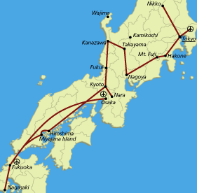 ROUTE: Tokyo - Nikko - Hakone - Takayama - Kanazawa - Fukui, nabij Eiheiji Zentempel - Kyoto - Hiroshima - Nagasaki - Fukuoka